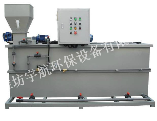 PAM加药装置根据所需药剂浓度,在搅拌箱内配制,经搅拌器搅拌均匀后投入溶液箱、用计量泵(加药泵)向投药点或指定的系统中输送所配制的溶液。成套加药装置具有结构紧凑、安全简单、操作使用简便等特点。该装置还可根据用户不同工艺流程的要求,进行有针对性的设计、配置必要的部件,实现功能适合(如自动远程控制)、经济实用。