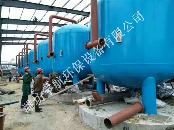 当系统处于过滤状态时,加压水从滤罐进口流入布水系统,均匀的到达滤料层。当水流过滤料层时,悬浮物被滤料截留。过滤器底部有带精密缝隙的集水器,过滤后的水被均匀收集,并流出过滤器。集水器上的精密缝隙能有效防止滤料的流失。机械联动堞阀(气动或电动)控制着水流的方向。